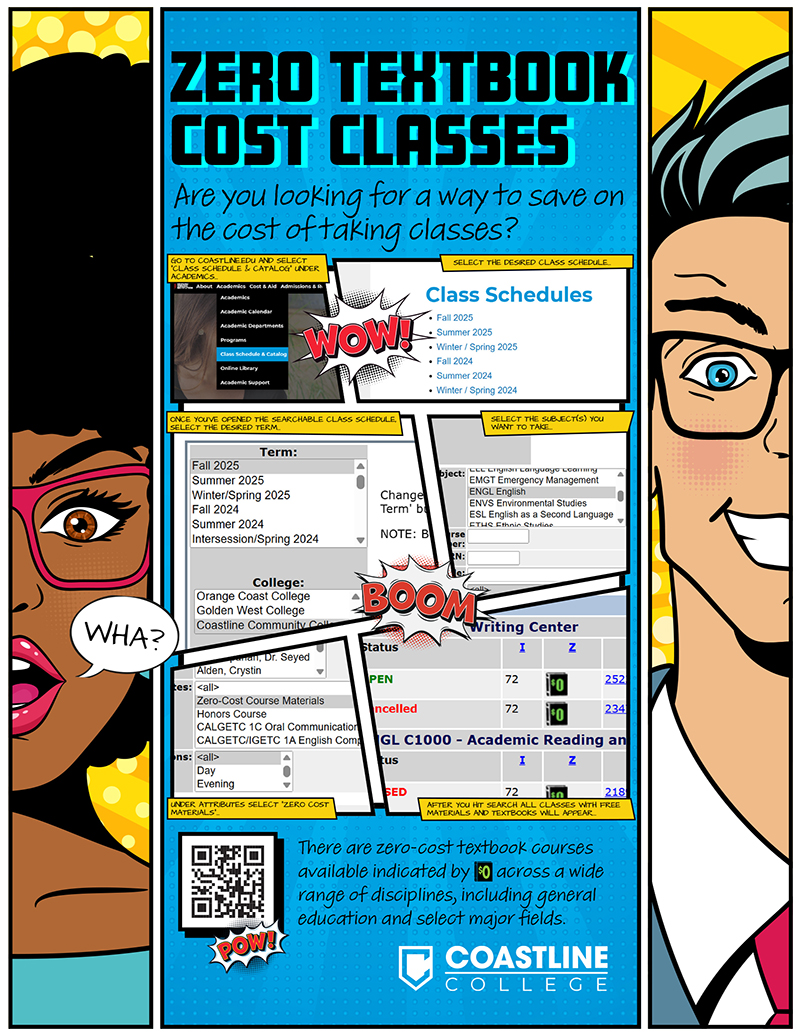 You can also watch Elizabeth Horan, Coastline's Librarian, explain in a video how to find classes with free textbooks on the Textbook Help webpage.