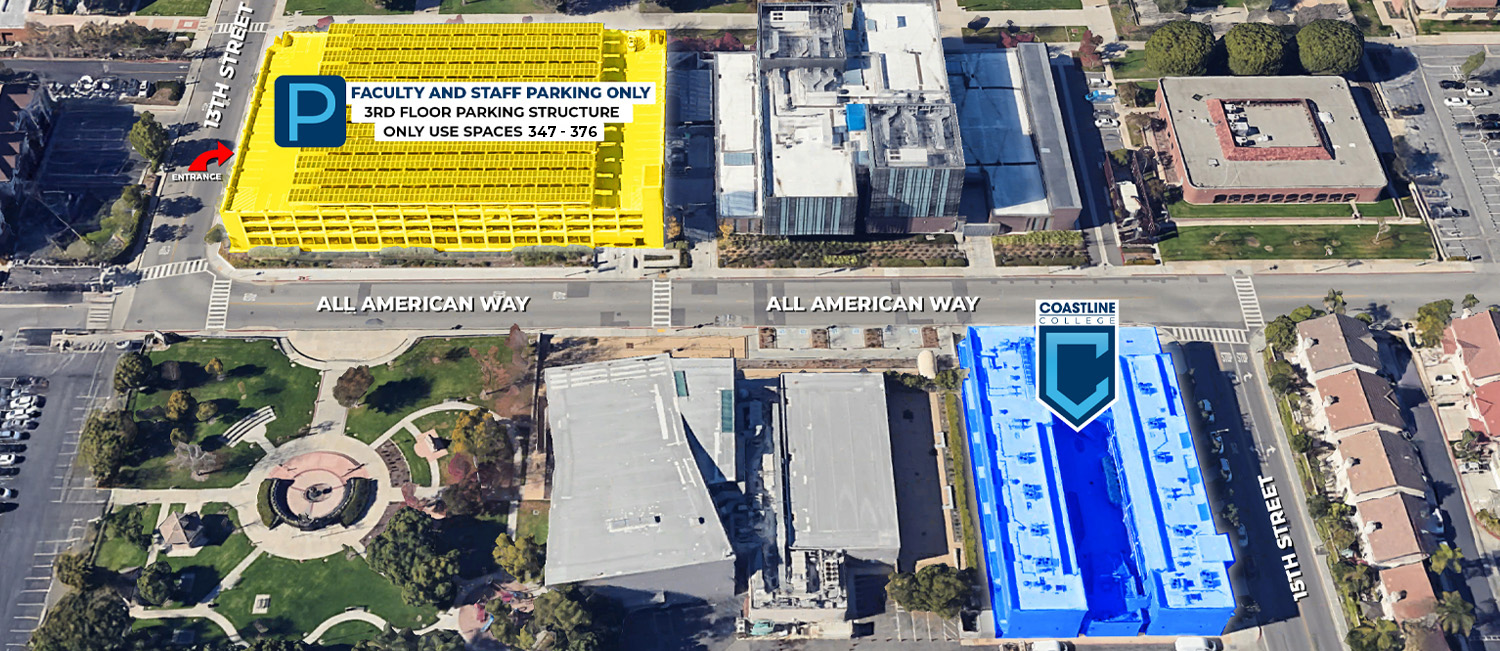 Faculty and staff parking at the Westminster - Le-Jao Campus will need to print out a physical copy of your Coastline College parking permit. Place the permit on your vehicle's dashboard and follow these parking instructions: